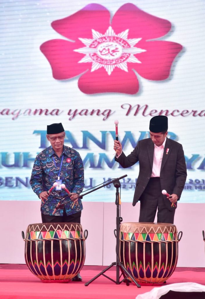 Sebagai simbolisasi, Presiden kemudian memukul gendang tradisional Bengkulu bernama doll bersama-sama Ketua Umum PP Muhammadiyah Haedar Nasir.
