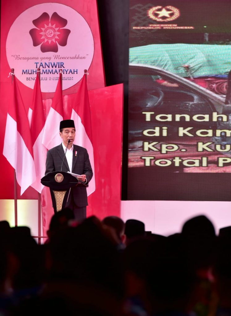 Teropongmalut.com — Bengkulu — Presiden Joko Widodo pada hari ini, Jumat, 15 Februari 2019, secara resmi membuka Tanwir Ke-51 Muhammadiyah. Acara ini digelar di Balai Raya Semarak, Kota Bengkulu, Provinsi Bengkulu.