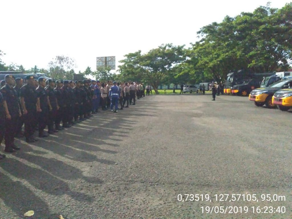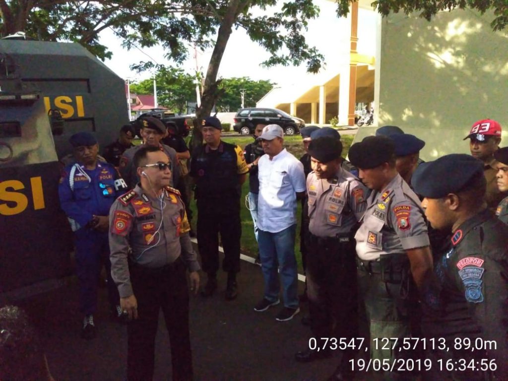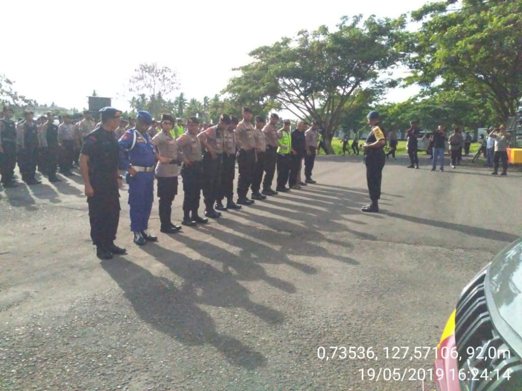 Kepolisian Polda Maluku Utara melakukan persiapan pengamanan yang berlangsung, Minggu, 19 Mei 2019 pukul 16.20 Wit bertempat halaman kantor DPRD Provinsi Malut, di lakukan apel pengecekan personil yang terlibat dalam pengamanan sidang paripurna penyampaian pidato Gubernur Malut periode 2019/2024, yang di pimpin oleh Dansat Brimob Polda Malut Kombespol Budi Satrijo, SH, M.Hum. dengan kesiapan siap untuk pengaman besok. (Red)