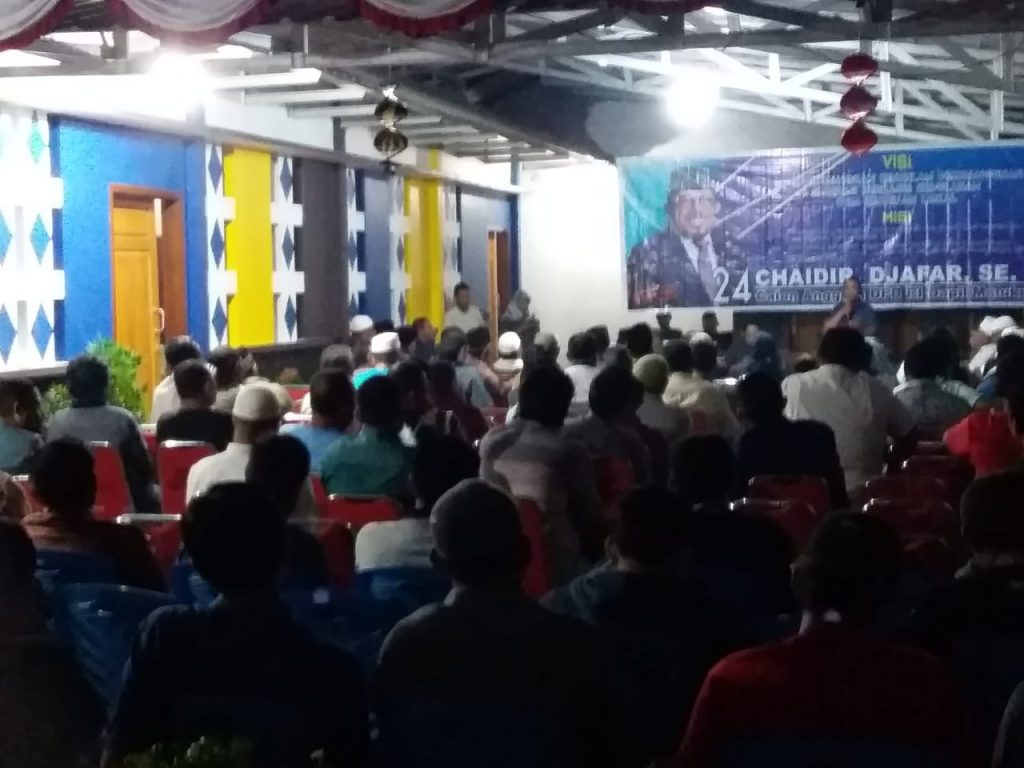 Halteng TM.com – Anggota DPD RI aktif Chaidir Djafar SE M.Si yang kembali Caleg DPD RI Dapil Maluku Utara menggelar tatap muka bersama masyarakat Kabupaten Halmahera Tengah yang berlangsung di desa Were Kecamatan Weda Sabtu, (02/03/2019) kemarin pukul 21.00 sampai pukul 23.30 wit.