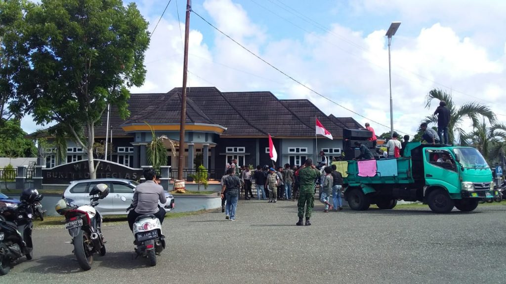 Halteng TM.com – Puluhan mahasiswa asal Patani Rabu, (24/04/2019) pagi tadi menggelar aksi damai di beberapa titik di Ibu Kota Kabupaten Halmahera Tengah yakni Kota Weda. Sebagai titik awal puluhan masa aksi menempati Pasar Kota Weda dan meneriaki GEMURUH Tolak sawit.