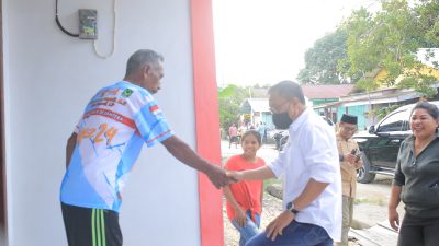 HALTENG — Ikram Malan Sangadji bersama Ahlan Djumadil meresmikan Rumah Layak Huni (RLH) bagi warga kurang mampu di Kecamatan Weda Selatan, Kabupaten Halmahera Tengah, Ahad (22/2/2026).