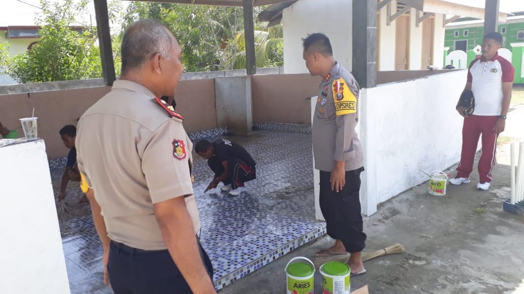 Jalin Silaturahmi, Polres Halteng Laksanakan Kerja Bhakti dan Penyerahan Bantuan