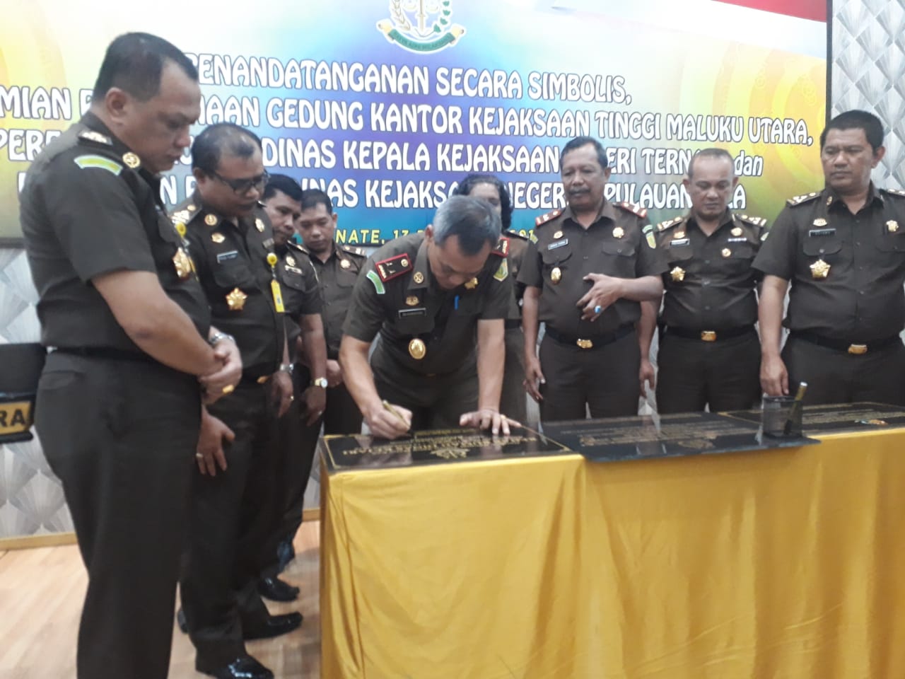 Ternate-teropongmalut.com, Kepala Kejaksaan Tinggi (Kajati) Maluku Utara Ida Bagus Nyoman Wismantanu, pada Kamis (13/12) melakukan penandatanganan secara simbolis Peresmian Penggunaan Gedung Kantor Kejaksaan Tinggi Maluku Utara, Peresmian Rumah Dinas Kepala Kejaksaan Negeri Ternate dan Peresmian Rumah Dinas Kejaksaan Negeri Kepulauan Sula.