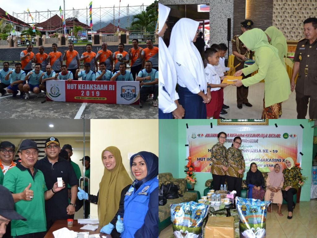 Kegiatan yang diikuti oleh semua pegawai Kejaksaan Tinggi Maluku Utara, Kejaksaan Negeri Ternate dan Kejaksaan Negeri Tidore Kepulauan dengan Inspektur Upacara Kepala Kejaksaan Tinggi Maluku Utara Bpk. Judhi Sutoto, SH. Selanjutnya Lomba Futsal, Yang diikuti oleh 4 Tim yaitu, Tim Kejati A, Tim Kejati B, Tim Kejari Ternate dan Tim Kejari Tikep.