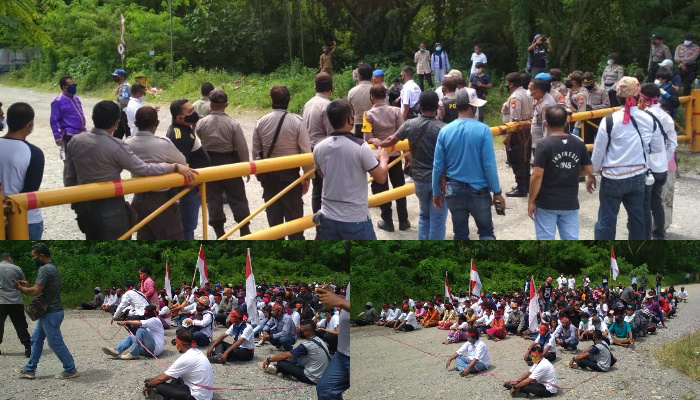 Halut, TeropongMalut.com – Aksi damai oleh Lembaga Pemuda Adat Pagu (LPA Pagu) Kecamatan Kao, Kabupaten Halmahera Utara (HALUT), dengan titik kumpul masa didepan site PT Nusa Halmahera Mineral (PT NHM) dengan massa sekitar 100 orang, mulai sekitar jam. 11.00 WIT1 (18/06/2020).