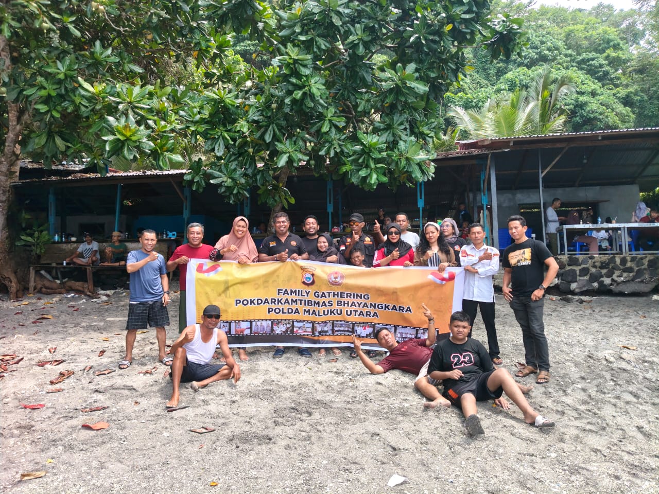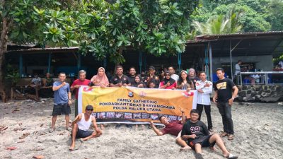 TERNATE – Usai prosesi pelantikan, jajaran Pengurus Pokdarkamtibmas Bhayangkara Polda Maluku Utara menggelar kegiatan Family Gathering sebagai ajang silaturahmi dan kebersamaan di Pantai Wisata Jikomalamo, Kota Ternate, Sabtu–Ahad (11–12/10/2025).