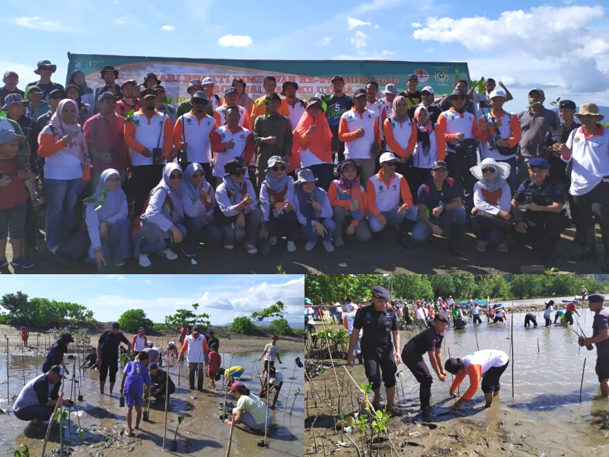 Sofifi, TM.com – Dalam rangka memperingati Hari Bhakti Rimbawan (HBR) ke 37 tahun 2020, Brimob Polda Malut Batalyon A Pelopor dan Dinas Kehutanan (Dishut) Pemprov Malut bersama masyarakat desa Kaiyasa Kecamatan Oba Utara Rabu, (18/3/2020) kemarin melaksanakan penanaman pohon mangrove di pantai desa Kaiyasa.
