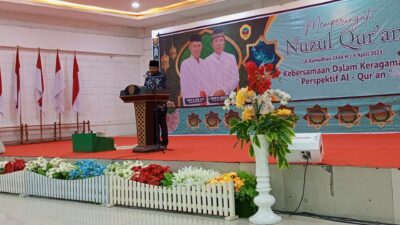 HALTENG, Teropongmalut.com – Peringati Nuzul Quran 18 Ramadhan 1444 Hijrah/ 9 April 2023 dengan tema “Kebersamaan Dalam Keragaman Perspektif Al-Qur’an” yang berlangsung di Pandopo Falcilno Weda desa Fidi Jaya Kecamatan Weda di buka oleh Pj Bupati Halteng Ir Ikram M Sangadji, yang dihadiri Ketua dan Anggota DPRD Halteng, Kapolres Halteng, pimpinan OPD dilingkup Pemkab dan Dharma Wanita Persatuan (DWP) Kabupaten Halmahera Tengah.