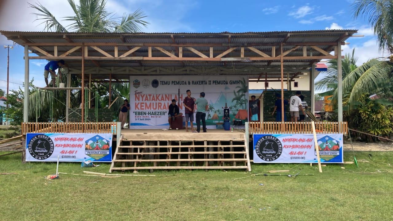 Pantauan media di Lapangan Bola Kaki sebagai lokasi Temu Pemuda dan Rakerta II menunjukkan bahwa pemuda GMIH sedang mempersiapkan segala hal.