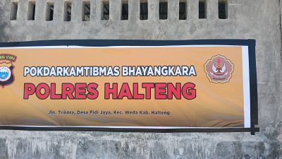 HALTENG – Pengurus Pokdarkamtibmas Bhayangkara Halmahera Tengah resmi menggantungkan identitas alamat sekretariat mereka di Jalan Trikora, Desa Fidi Jaya, Kecamatan Weda, Kamis (16/10/2025).