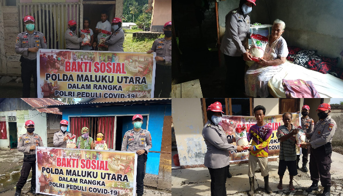 Sofifi – TM. Polda Maluku Utara (Malut) diwakili oleh Sekolah Polisi Negara (SPN) rabu (10/06/20) kembali menyalurkan sembilan bahan pokok (Sembako) berupa beras 10 kg kepada masyarakat diwilayah kecamatan Oba Utara kota Tidore Kepulauan yang terdampak virus corona (Covid-19).