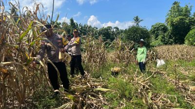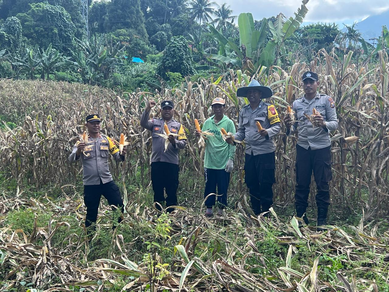 HALBAR – Dalam upaya mendukung program ketahanan pangan nasional, Polsek Ibu Polres Halmahera Barat melaksanakan panen jagung kuartal III di lahan kelompok tani Pomakariwo, Desa Kie Ici, Kecamatan Ibu, Senin (29/9/2025).