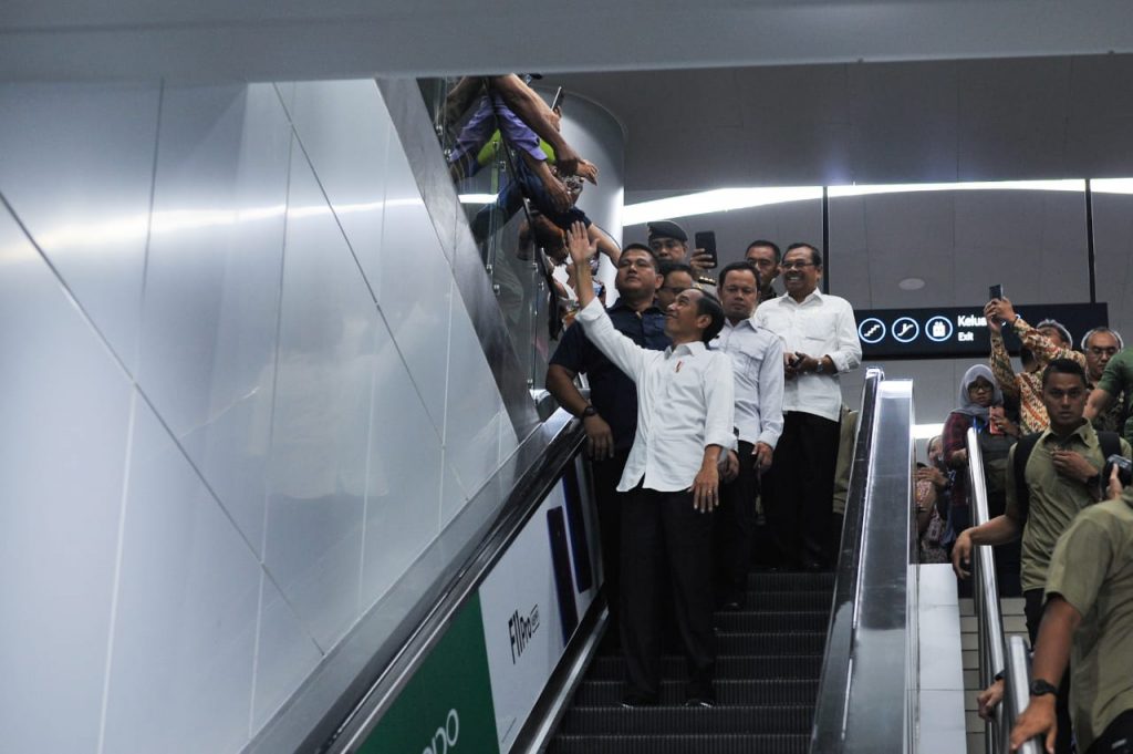 Kehadiran Kepala Negara ini disambut riuh masyarakat yang hadir di Stasiun Bundaran HI. Masyarakat pun langsung berebut untuk bersalaman dan berswafoto dengan Kepala Negara.
