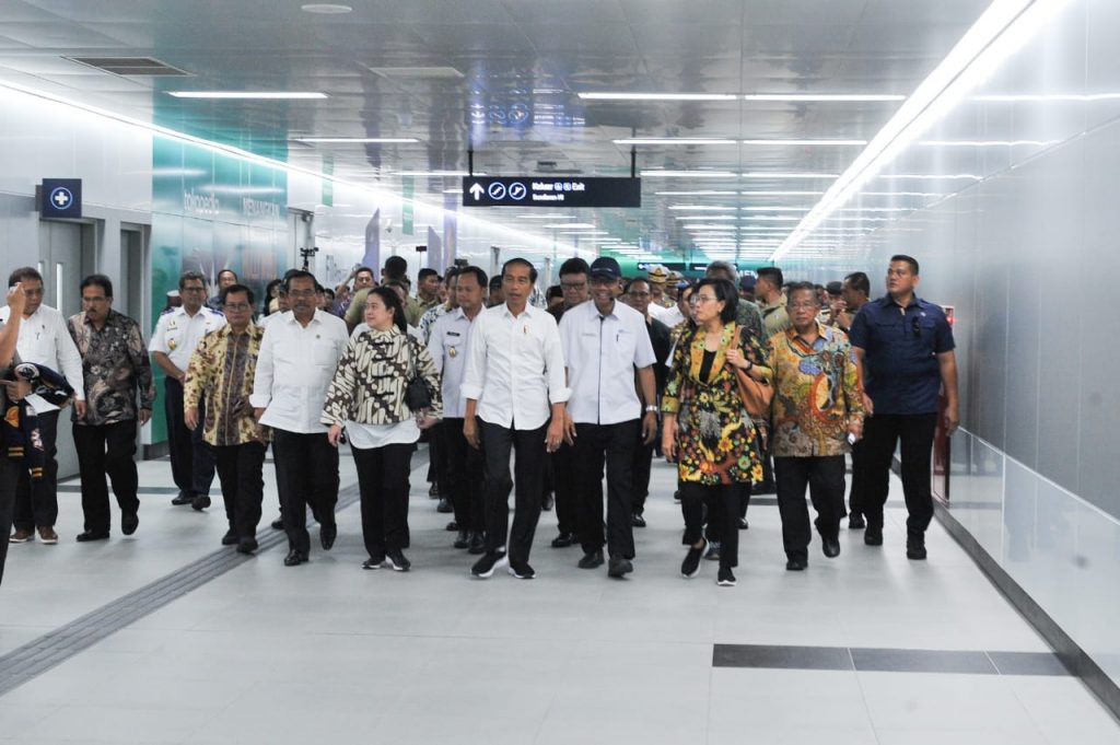 Presiden datang ke Stasiun Bundaran HI bersama sejumlah menteri Kabinet Kerja seusai rapat terbatas tentang pengelolaan transportasi Jabodetabek. Presiden dan rombongan tiba pukul 11.54 WIB dan langsung menuju peron kereta yang berada di bawah tanah.