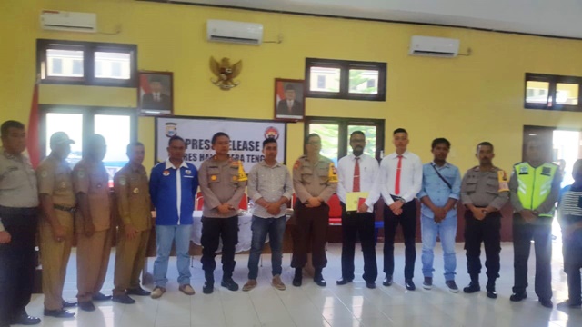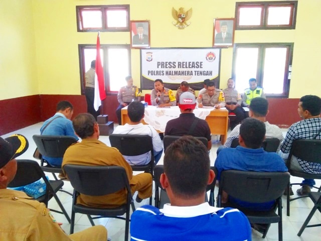 Hadir dalam Press Release, Kapolres Halteng AKBP Andri Hariyanto didampingi Kasubag Humas Polres Halteng Iptu Sudarlin Lanone, Kasat Binmas AKP Abd Hamid, Kabag Ops, Kasat Intelkam, dan jajaran perwira lainnya.