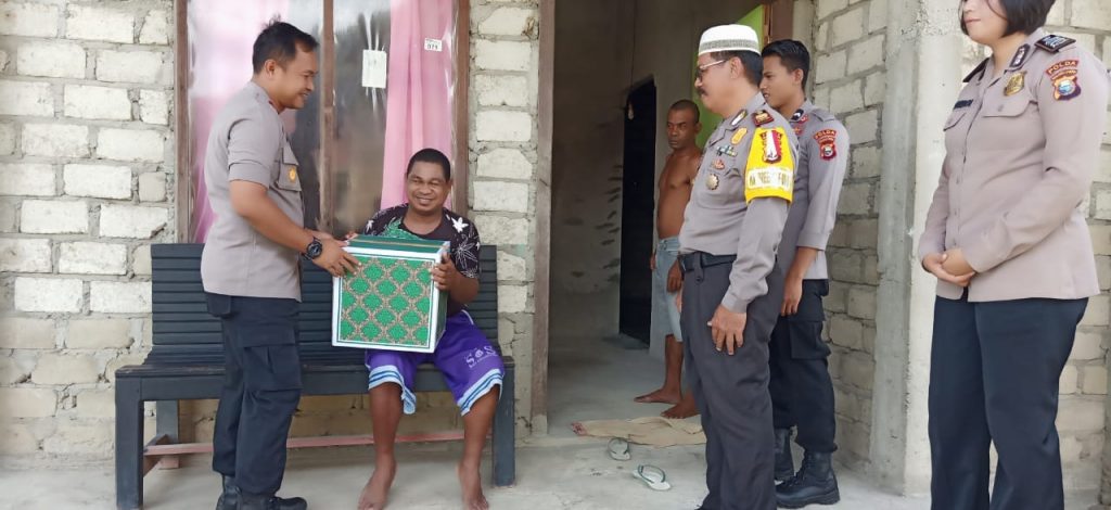 Penyerahan bingkisan ramadhan berupa sembako langsung diberikan oleh Kapolres Halteng AKBP. Andri Hariyanto S.ik sekaligus menyampaikan pesan-pesan Kamtibmas.