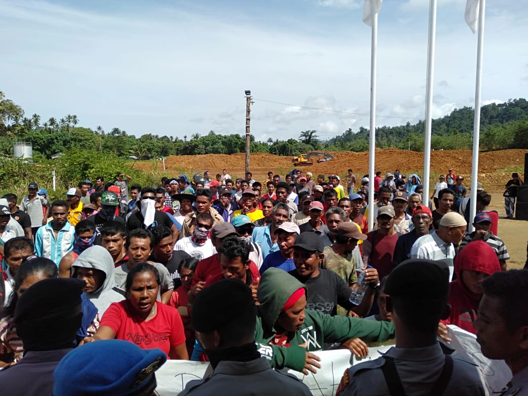 Ratusan warga yang melakukan aksi menuntut agar perusahaan menindak lanjuti permasalahan lahan yang belum dibayarkan. Bertindak sebagai korlap Malik Muhamad dan Kornelius Hago dengan jumlah massa aksi sekitar 125 orang.