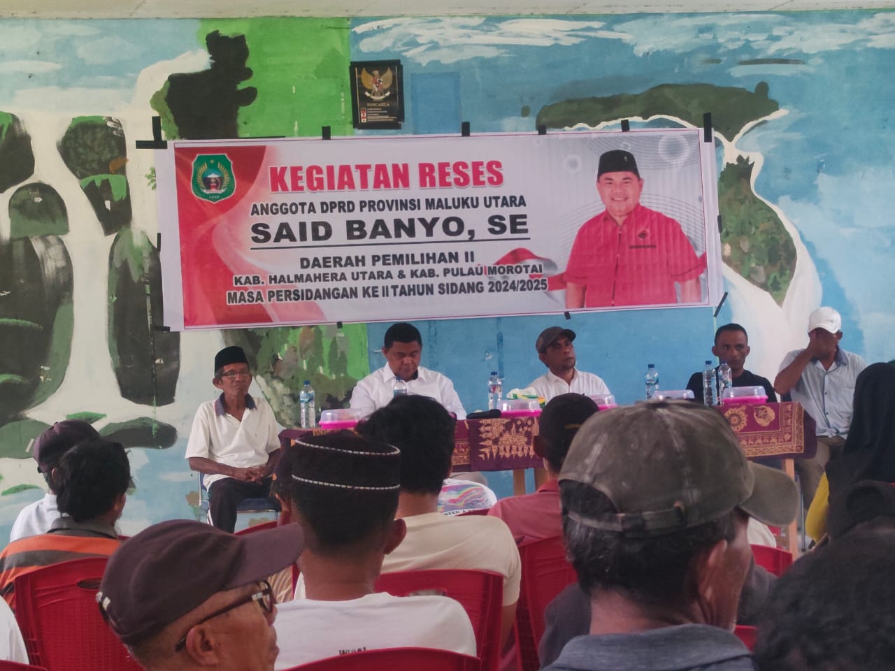 Said Banyo, SE., Ketua Fraksi PDI-P Wakil Ketua Komisi II DPRD Maluku Utara, Dapil 2 Halut-Morotai memimpin reses ini. Lokasi reses meliputi: Desa Ngidiho (Halmahera Utara); Desa Sabatai Baru, Sabatai Tua, dan Morotai Jaya (Morotai Selatan); Desa Pangeo (Morotai Jaya); Desa Tanjung Saleh (Morotai Utara); Desa Aru Burung (Pulau Rao); Desa Cio Maleleo (Morotai Selatan Barat); dan Gedung Pertemuan Desa Sambiki Tua (Morotai Timur), yang juga dihadiri masyarakat Desa Gamlamo. Turut hadir dalam reses terakhir Kepala Desa Sambiki (Ichsan Banyo), Kepala Desa Gamlamo (Mukadis Tou, SH), Pj. Kepala Desa Sambiki Baru (Hamid S. Naba), Imam, Ketua dan anggota BPD.