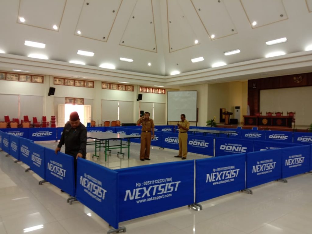 Dalam persiapan lapangan tenis meja di Aula Kantor Bupati terlihat Kepala Bagian Hukum dan Ham, Kepala Bagian Organisasi Ridwan Saliden, Asisten III Bupati M Said Yastab turut melakukan persiapan pada lapangan tenis meja. (Ode)