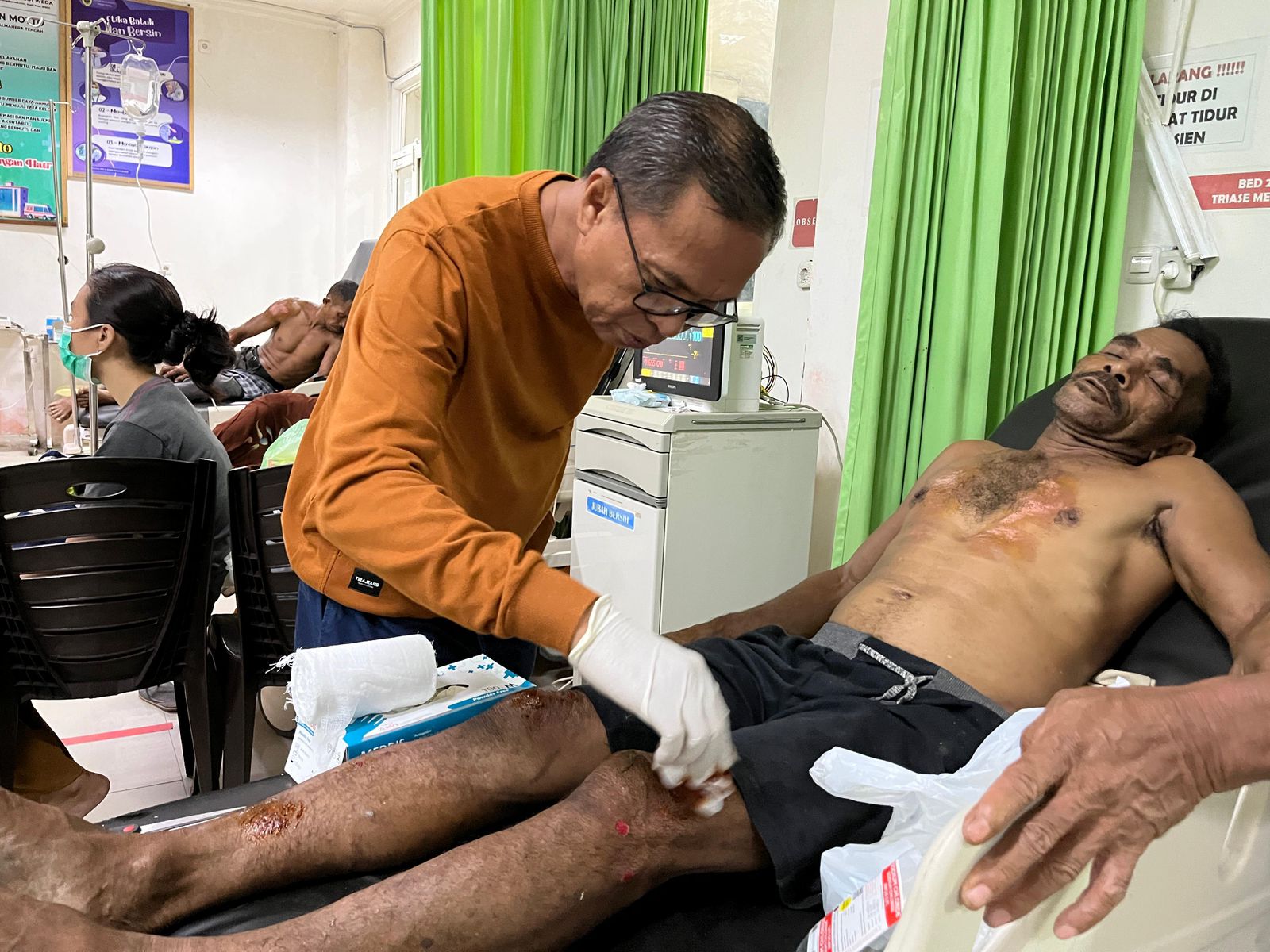 Satu per satu pasien disapa dengan tulus. Ada Ibu Sarlina Guduru, warga Desa Gemaf; Ibu Petronela Bane (79) dari Desa Fifi Jaya, hingga Bapak Joni Supu, korban luka bakar yang tengah menjalani perawatan intensif.