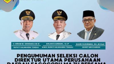 TEROPONGMALUT.COM — Pemerintah Kabupaten Halmahera Tengah melalui Panitia Seleksi resmi membuka pendaftaran Calon Direktur Utama…